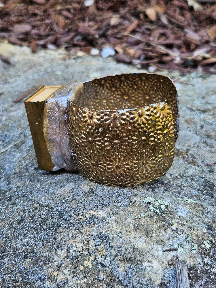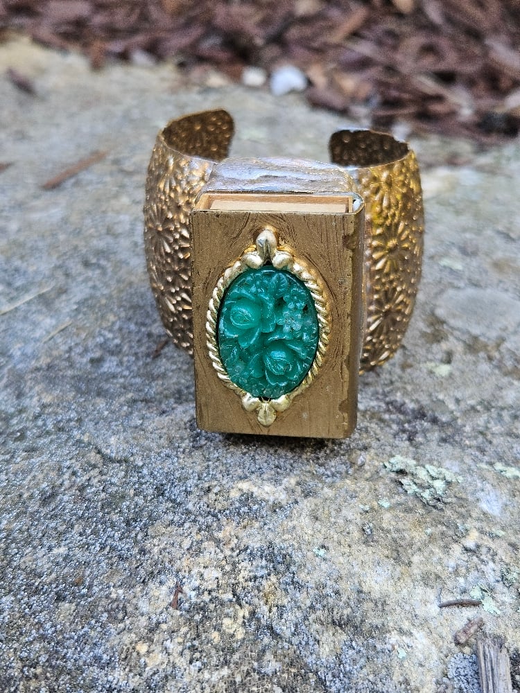 Upcycled vintage adjustable cuff with sculpted vintage green toned matchbook...super unique!